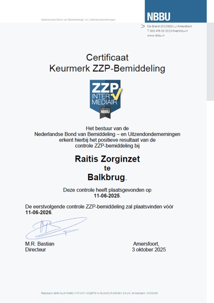 Wij zijn Yorick Bonen & Marcel Koelma, oprichters van Raitis Zorginzet. Raitis staat voor directe kwaliteit in externe zorginzet bemiddeling. Wij helpen zorgorganisaties uit de brand door ervaren en gedegen zelfstandige zorgprofessionals uit ons netwerk in te zetten op het moment dat het nodig is. Bij opschaling, personele problemen, complexe casuïstiek of juist voor het creëren van rust op de locatie.